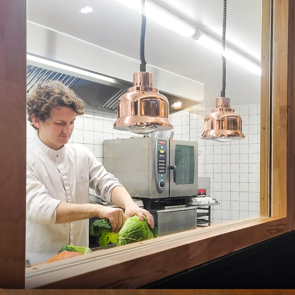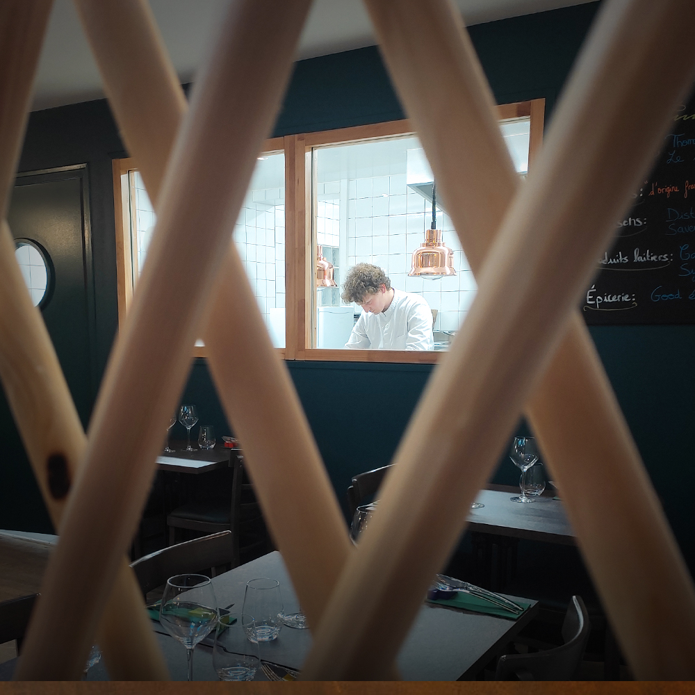 Tous deux cuisiniers nous portons une certaine importance à la transparence et aux circuits courts. A travers la cuisine vitrée, vous pourrez découvrir les petits secrets de notre cuisine bistronomique